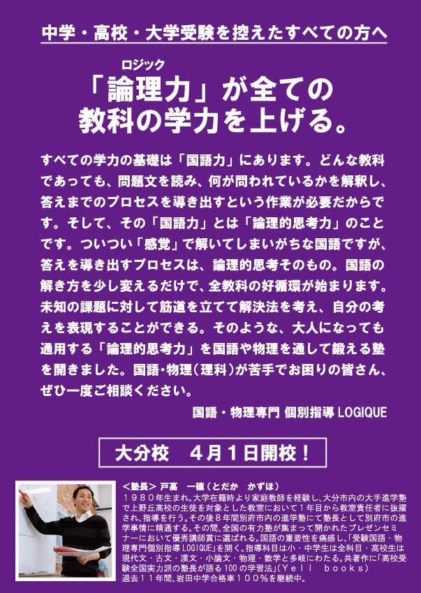 個別指導LOGIQUE大分校の電話番号を取得いたしました。